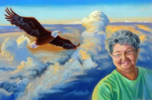 Each woman has shared their life story with me through written form or conversation. They decided what imagery, symbols, colors and words will best speak of their life. I left it up to each woman’s discretion as to how she would like her story portrayed. Each portrait story is a cooperative effort between the woman, the artwork and myself.